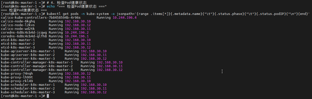 echo "如果以上所有项都正常,恭喜您!Kubernetes集群部署成功!"