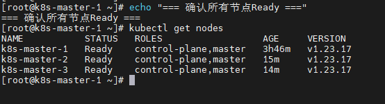 echo "✓ 所有节点状态为Ready"
