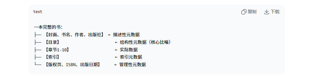 再说一下元数据这个概念,元数据就和一本书的目录一样,数据就是一本完整的书