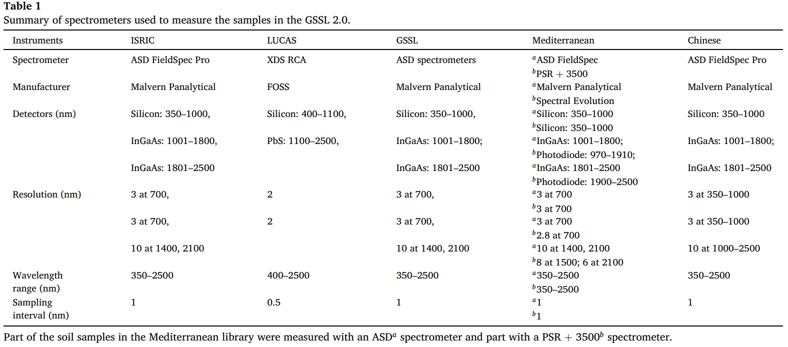 注:地中海光谱库中的部分土壤样品使用 ASD 光谱仪测量,部分使用 PSR + 3500b 光谱仪测量。
