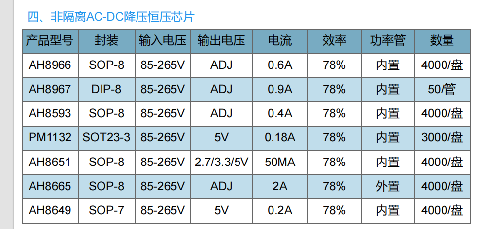 - 集成功能:内置整流、降压、稳压电路,可能集成过流/过压保护(需查阅具体芯片手册确认)。