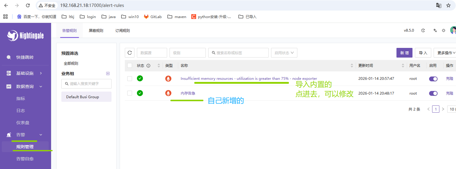 - [创建告警规则 (不推荐新增,推荐导入内置的)](#创建告警规则 (不推荐新增,推荐导入内置的))