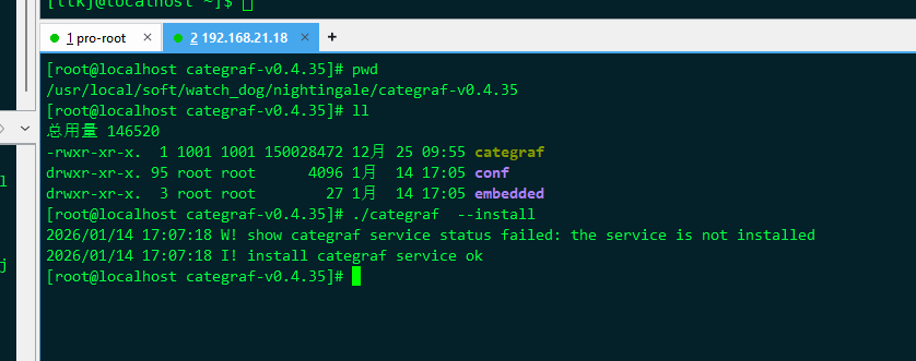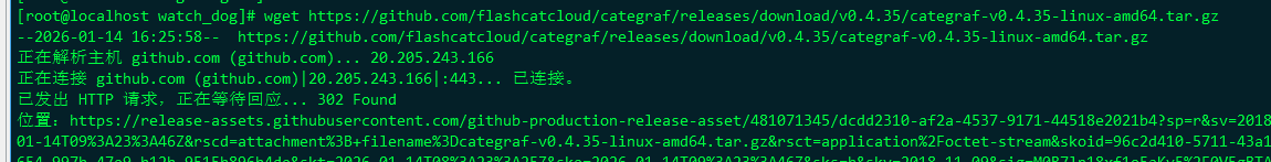 [root@localhost watch_dog]# wget https://github.com/flashcatcloud/categraf/releases/download/v0.4.35/categraf-v0.4.35-linux-amd64.tar.gz