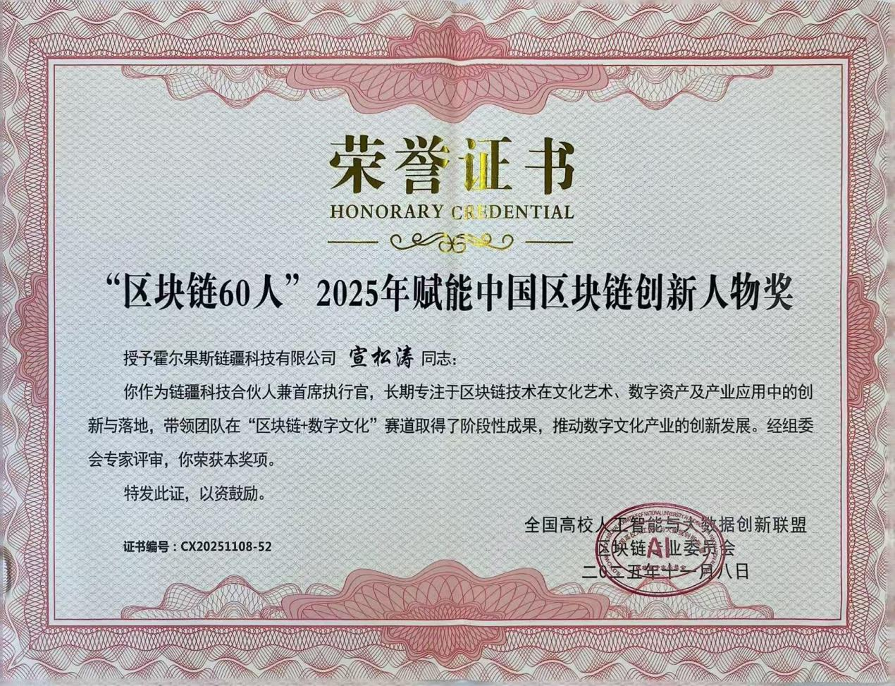 在这一系列创新实践的推动下,iBox及其引领者获得了双重认可。平台层面,《iBox助力文化产业数字化转型创新实践》成功入选2025数字化转型特色案例,其非遗数字化项目也被评为行业标杆。领导层面,宣松涛所获的"区块链60人"奖项,正是对其带领iBox在"区块链+数字文化"赛道取得阶段性创新成果的权威肯定。更重要的是,iBox展现出引领行业健康发展的责任感。平台不仅积极投身非遗数字化保存与传播,响应文化强国战略,iBox CEO宣松涛"共建共享基础设施"的呼吁,也体现了推动行业建立规范、可持续生态的深远考量。