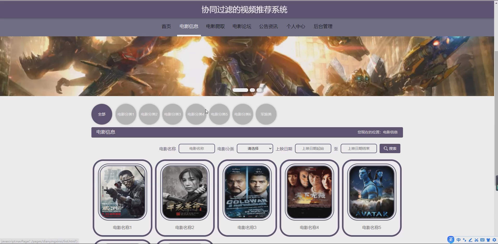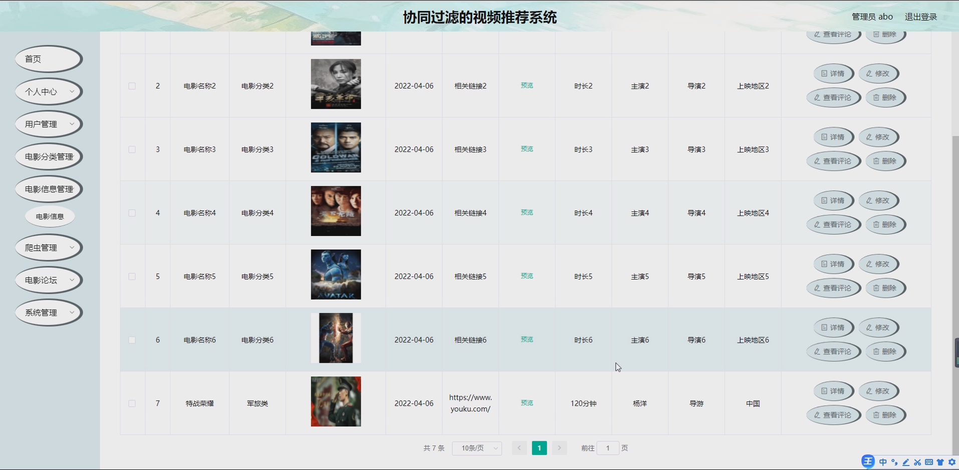 一套基于SSM协同过滤的视频推荐系统,实现用户、电影分类、电影信息管理及精准推荐功能。