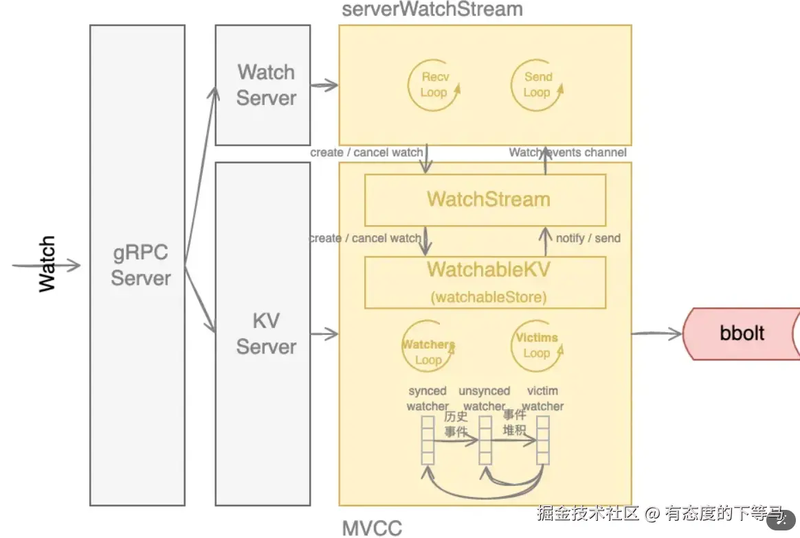 apiserver是作为grpc客户端与etcd交互,etcd 的 Watch 机制是一个集 MVCC 版本控制、高效内存索引、持久化存储和流式网络通信 于一体的复杂系统。其核心价值在于提供了 基于逻辑时钟的、可靠的、有序的变更通知,这正是 Kubernetes 等分布式系统能够构建出高效、一致的状态协调机制的基础。
