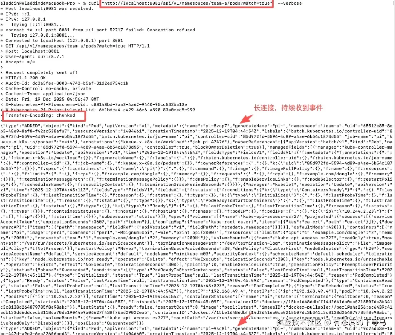 scheduler和kubelet、kubectl也有对于apiserver的调用,监听资源变更的方式都是watchAPI, 这是一种非标准的chunked transfer encoding,http1.1传输层编码。