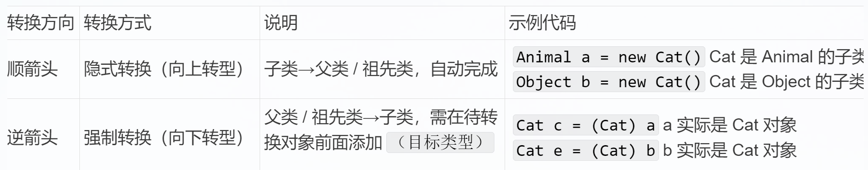 转换前提转换的对象和目标类型之间必须符合「是一个」的继承 / 实现关系