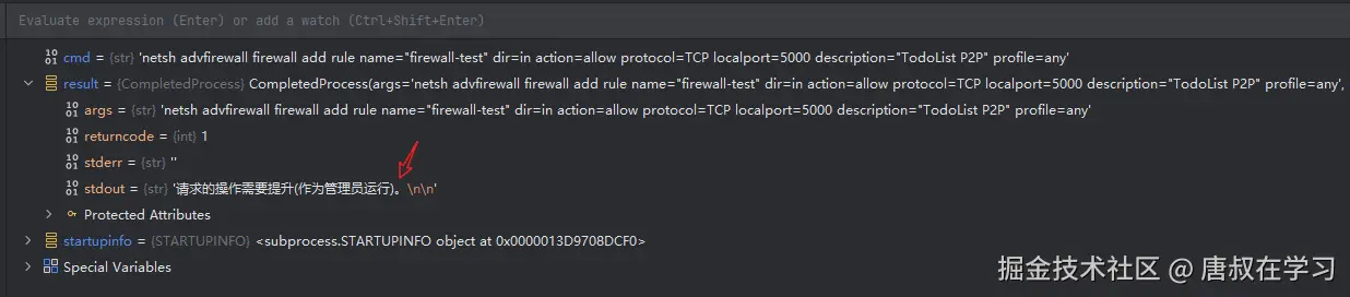 subprocess指令配置开通指定端口号防火墙入站规则报错了。PS:有关subprocess入门的,可以查阅此前的这篇文章:用python实现类AI自动执行终端指令