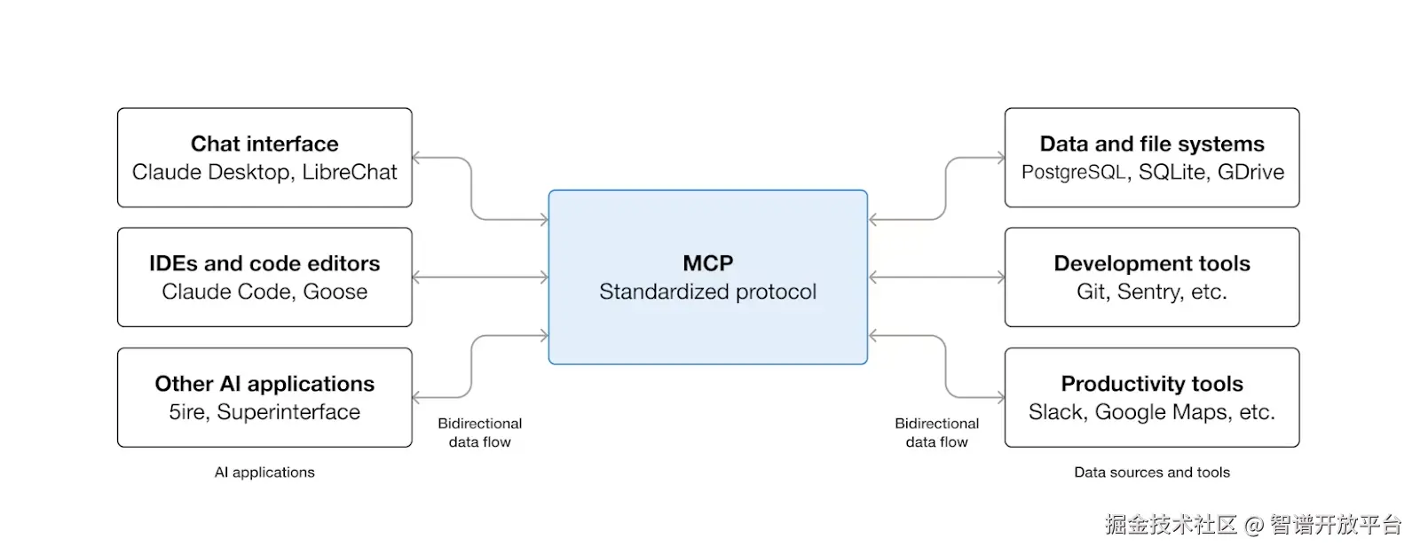 通过 MCP,AI 应用可以用更统一的方式接入你现有的工具链与数据来源。