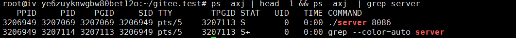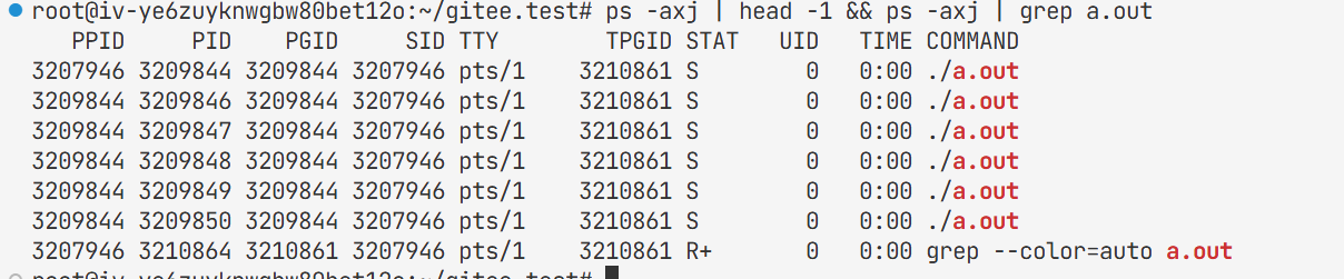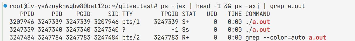 编译运行后,用 ps axj | grep 程序名 查看,会看到:
