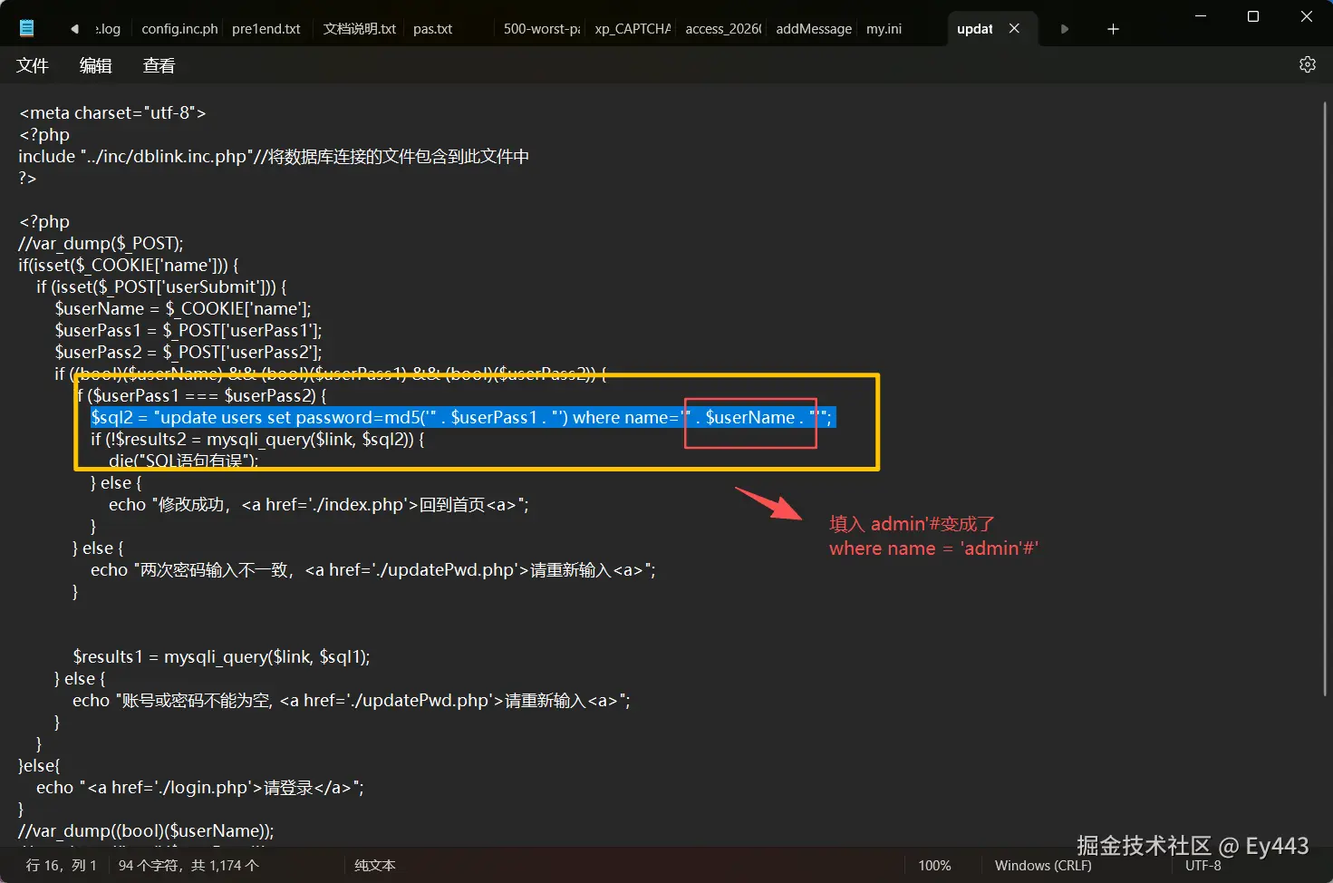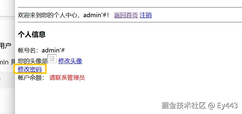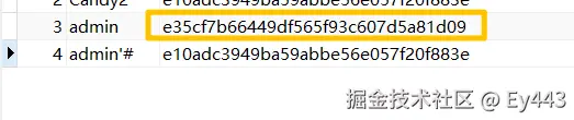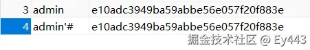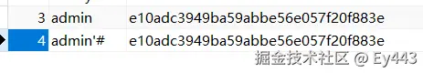 刷新后,改变的是admin的密码,admin'#没有变