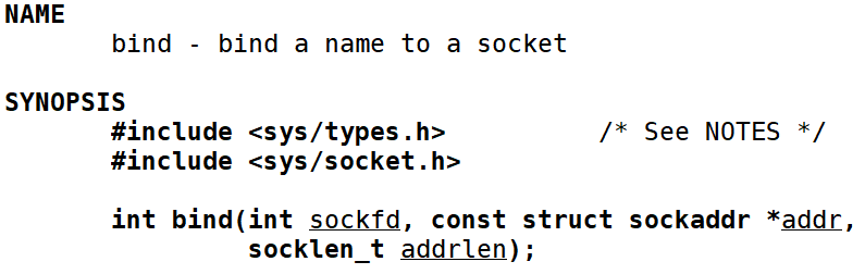 int bind(int socket,const struct sockaddr * address,socklen_t address_len);