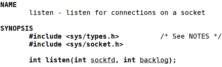 int listen(int socket,int backlog);