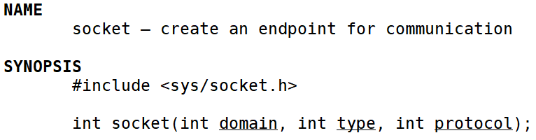 int socket(int domain,int type,int protocol);