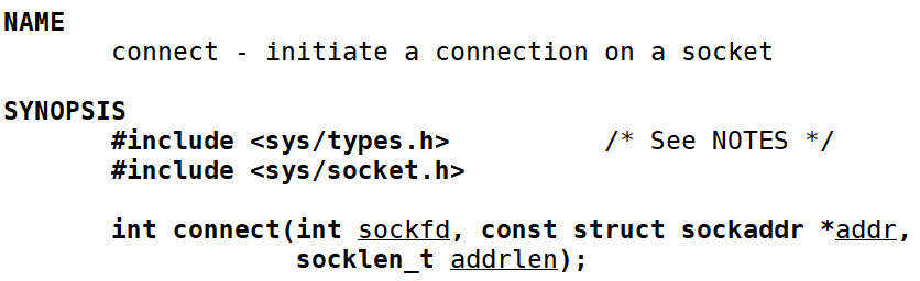 int connet(int socket,const struct sockaddr * addr,socklen_t addrlen);