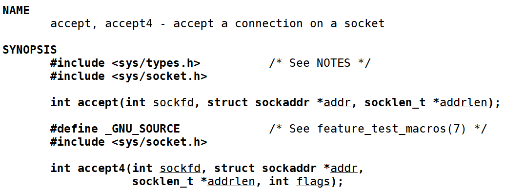 int accept(int socket,struct sockaddr * address,socklen_t * address_len);