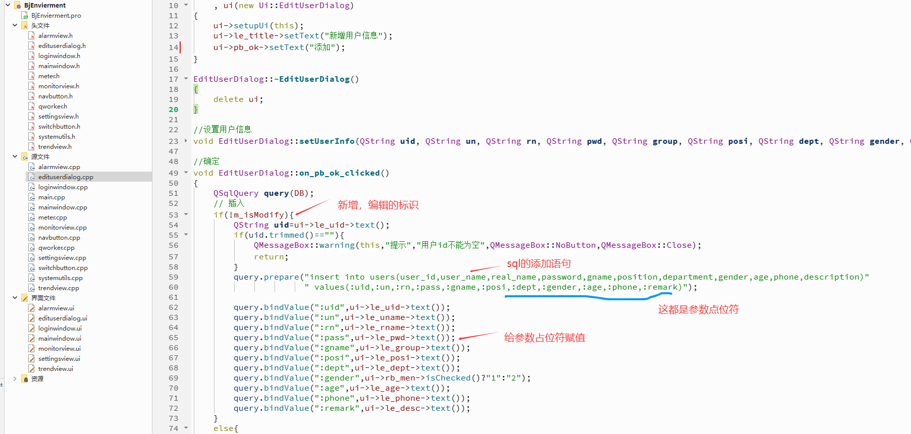 query.prepare("insert into users(user_id,user_name,real_name,password,gname,position,department,gender,age,phone,description)"