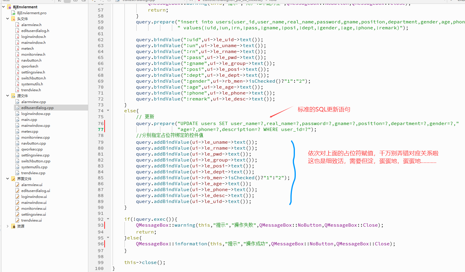 query.prepare("UPDATE users SET user_name=?,real_name=?,password=?,gname=?,position=?,department=?,gender=?,"