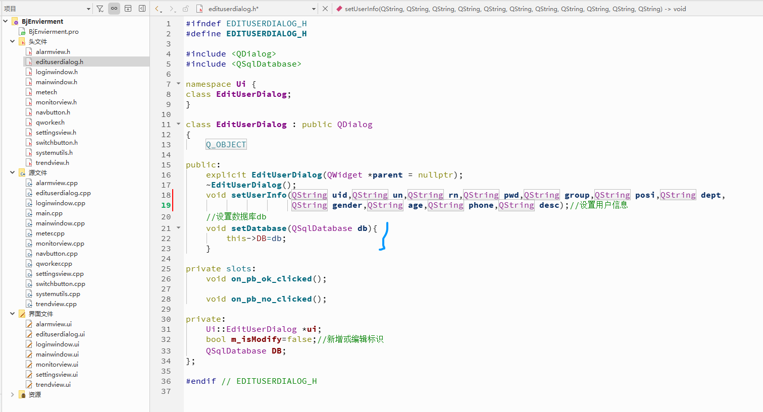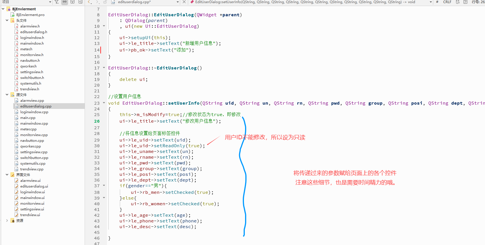 void setUserInfo(QString uid,QString un,QString rn,QString pwd,QString group,QString posi,QString dept,QString gender,QString age,QString phone,QString desc);//设置用户信息