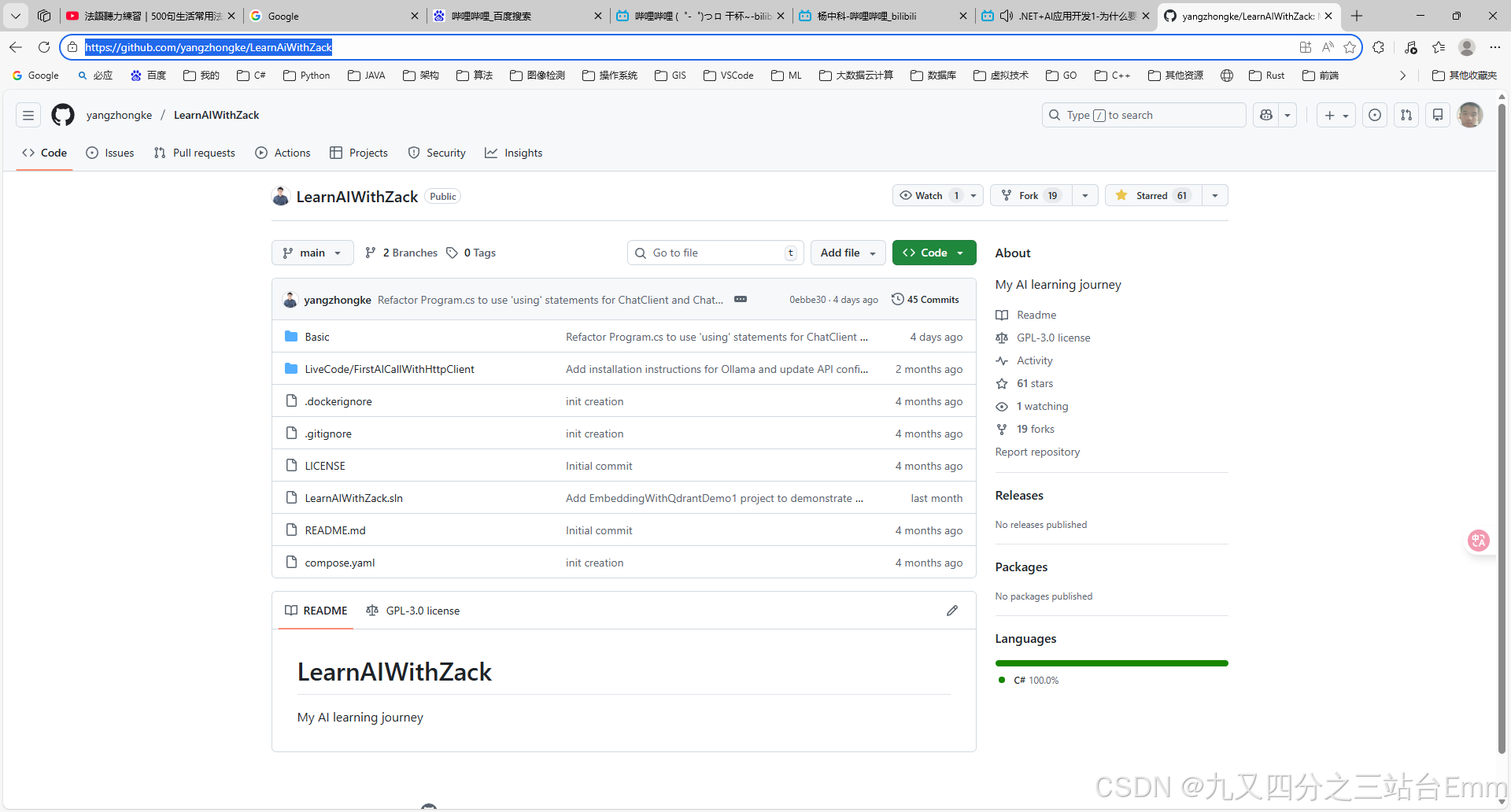 github地址为:yangzhongke/LearnAIWithZack: My AI learning journey