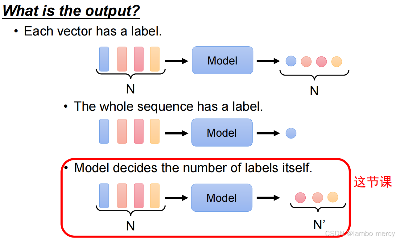 - 逻辑:输入的每个向量对应一个输出标签,输入、输出长度均为 N。