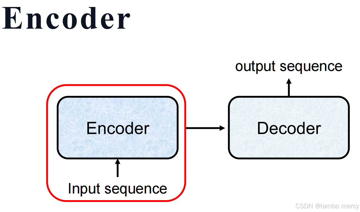 - 输入序列(Input sequence)先传入 Encoder,由 Encoder 将其编码为特征表示;