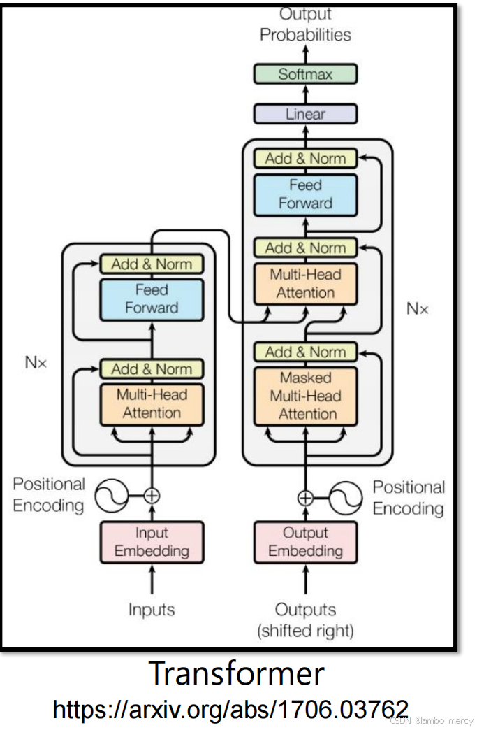 - Output Embedding:将已生成的 token 转换为向量表示;