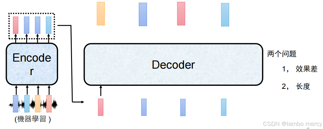 "将 Encoder 提取的特征直接当作 Decoder 输入" 的做法,会直接导致图中提到的 "效果差""长度失控" 两个核心问题,原因如下: