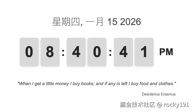 之前看到类似的时钟工具,ai coding 一个类似的!浏览器全屏显示后,当成屏保,也不错。