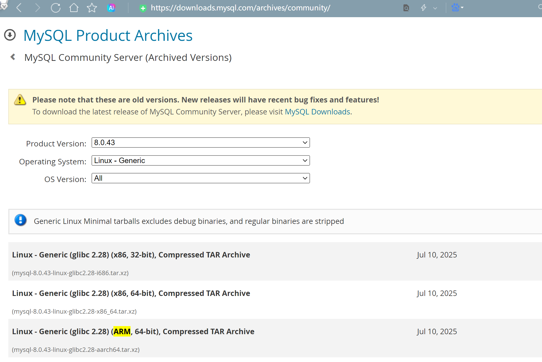 https://cdn.mysql.com/archives/mysql-8.0/mysql-8.0.43-linux-glibc2.28-aarch64.tar