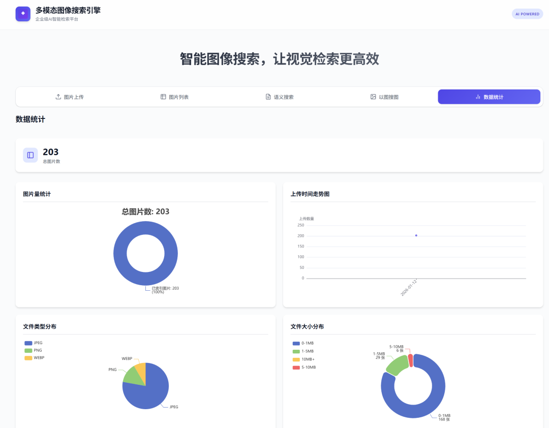索引自动管理,支持增量添加新图像,通过文件名作为文档ID确保去重更新。系统还提供了索引健康检查、文档统计等功能,便于监控和管理。