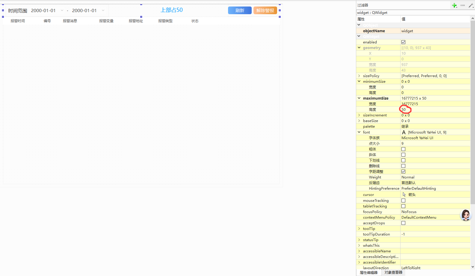 若需要固定控件大小,需在控件中设置