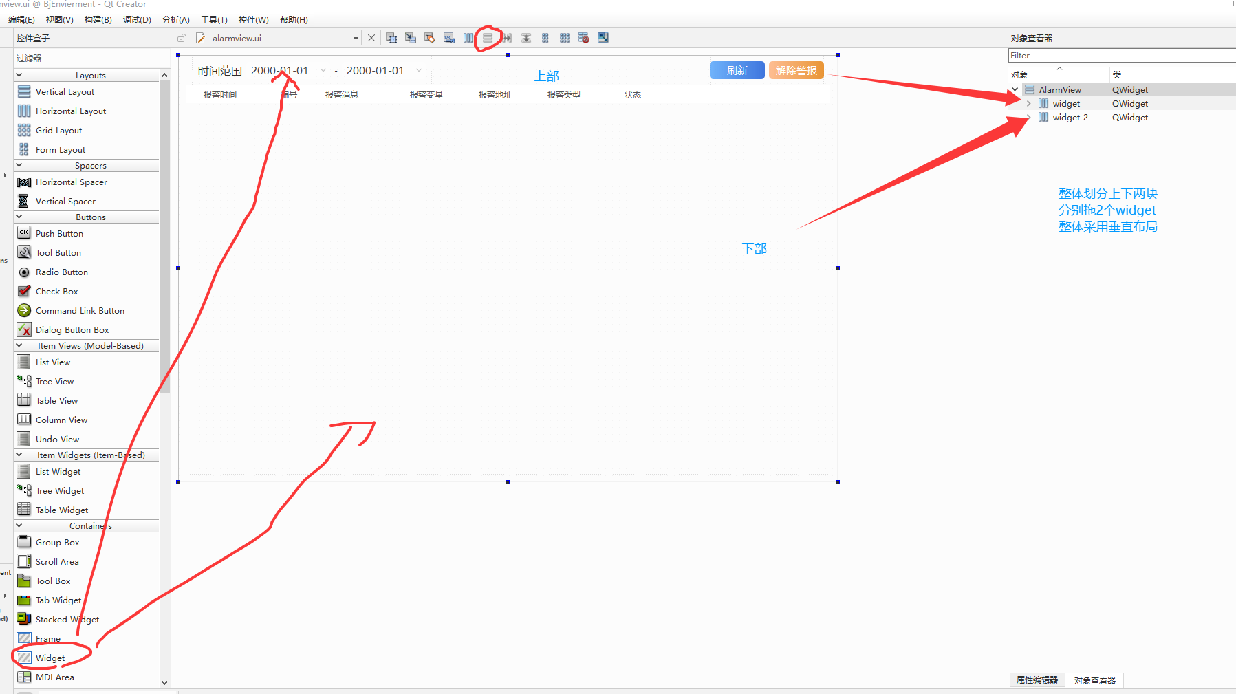 - QWidget:所有控件的基类,可作为容器使用。