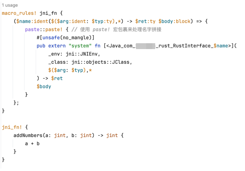 // 定义宏:jni_fn!(函数名, 参数, 返回值, 逻辑)