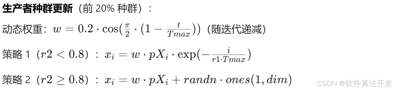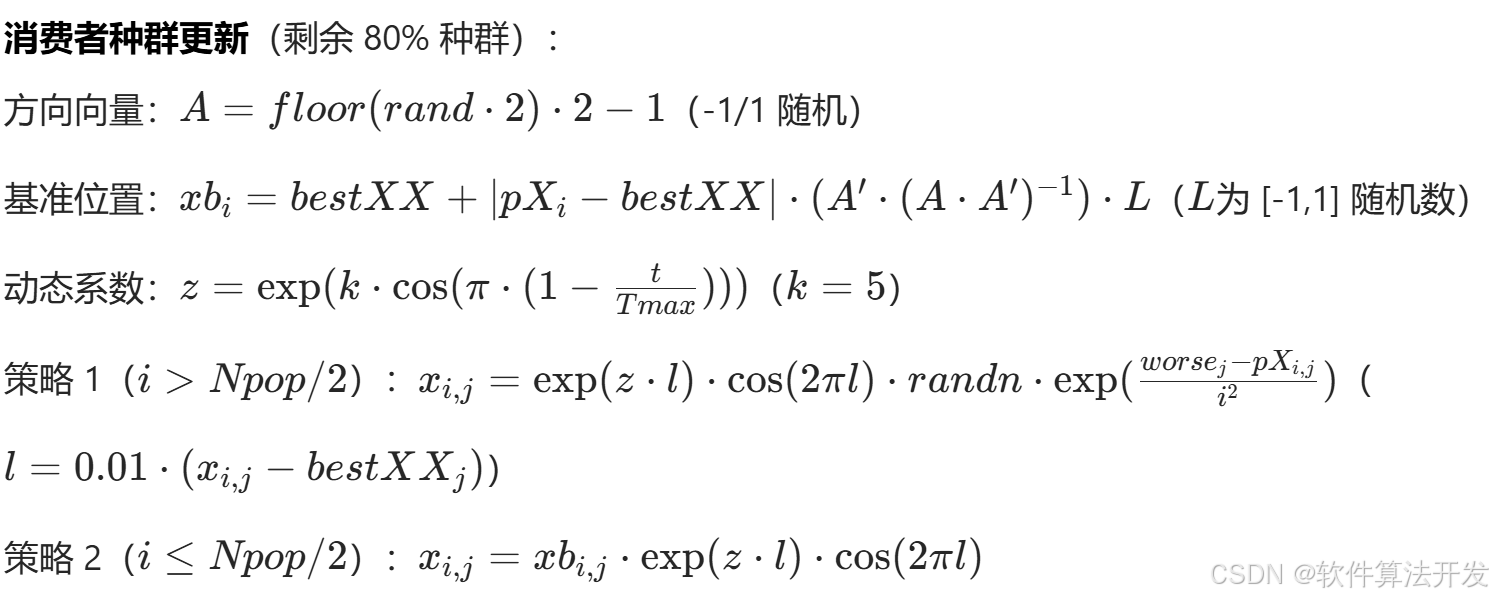 核心是分生产者、消费者种群更新位置,引入动态权重、Levy飞行增强搜索能力: