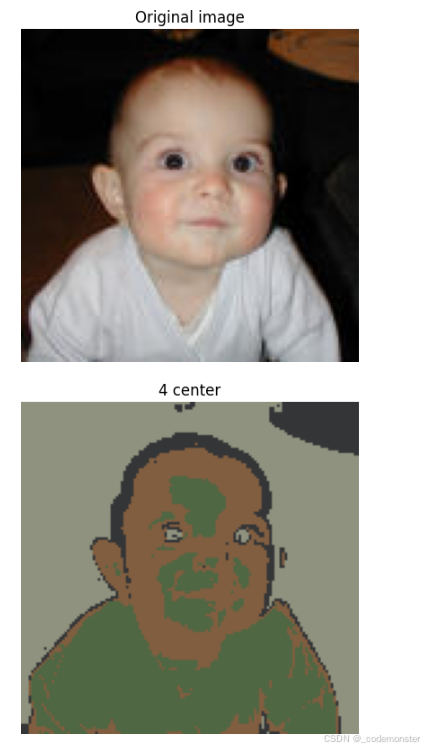 segmented_imgs.astype(np.uint8):将图像转换为uint8类型(matplotlib显示需要)'{} center'.format(n_cluster):标题显示使用了多少个聚类中心- 显示K-means聚类后的分割结果