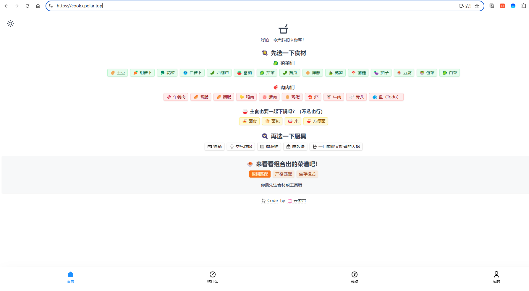 YunYouJun/cook 用简单的方式解决了日常 "吃什么" 的烦恼,搭配 cpolar 突破局域网限制后,更是让这份便利不受空间约束。无论是日常自用还是和家人共享,都能让烹饪这件事变得更轻松、更有乐趣。