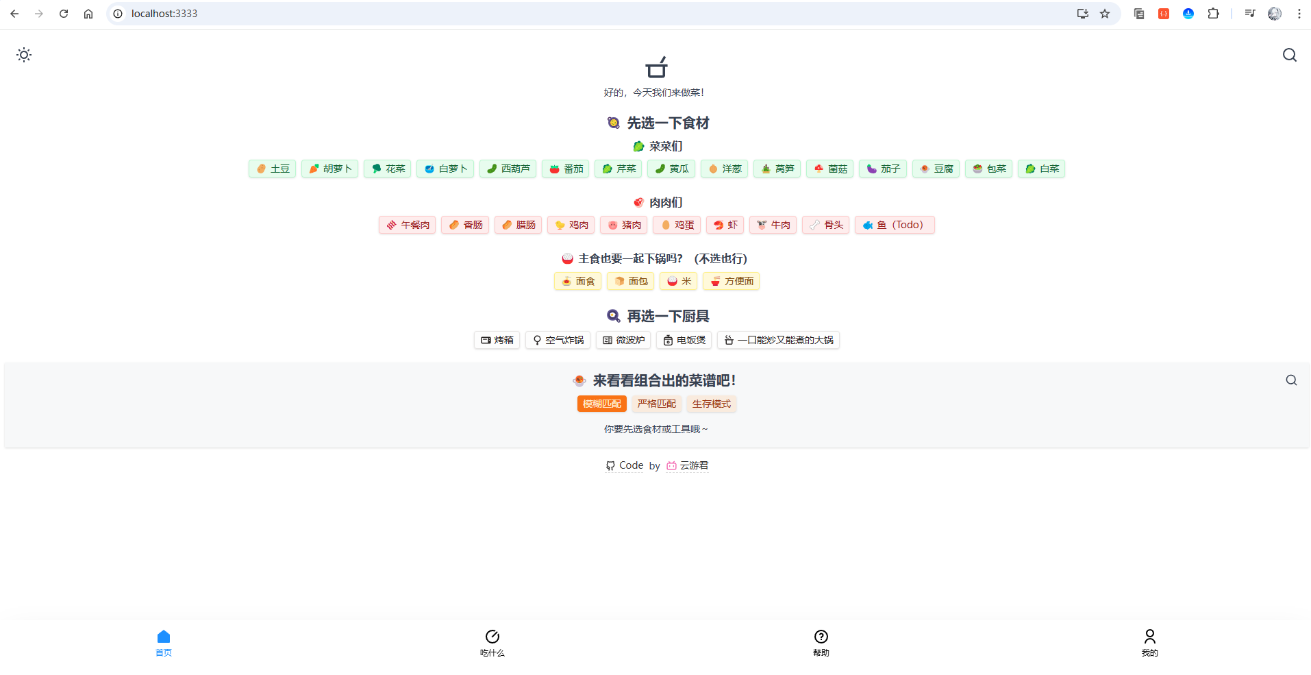 在线版用起来很方便,但也建议在电脑里留一个"本地版"。这样一来,哪怕官网偶尔打不开或很慢,出门在外没网络时,你也能照常使用;在自己电脑上打开会更利索;你的食材和口味偏好只保存在本机,更放心;还可以自己增删菜谱、改标签,做成更符合你家口味的小帮手。想要一个随时可用、简单可靠、还能按喜好慢慢调的版本,本地部署就很合适。