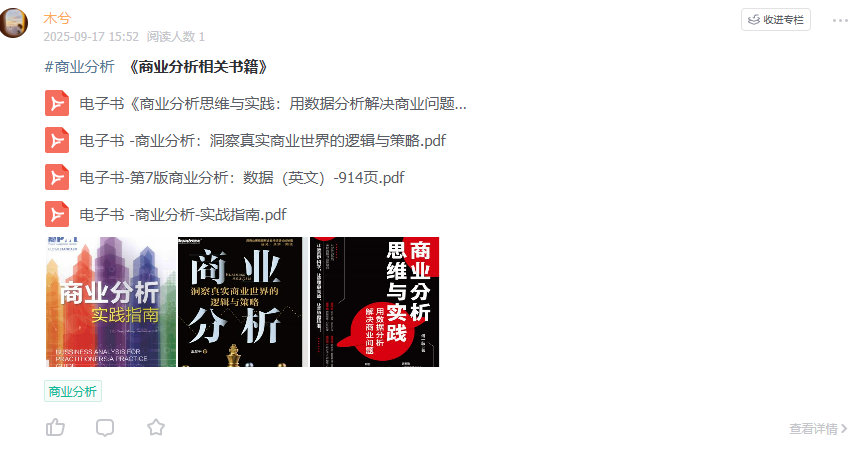【数据分析·领地】星球一起学习财务分析、经营分析、商业分析、数据治理、数据资产~等数据分析相关资料~
