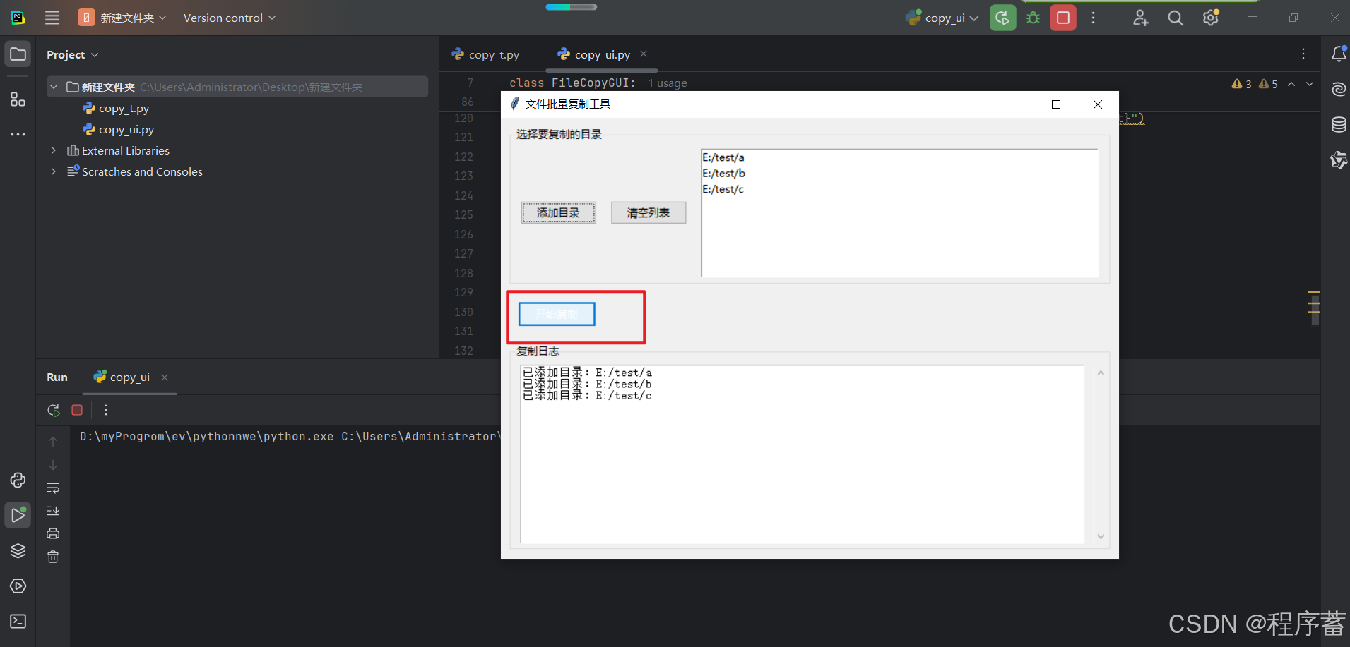 - 开始复制按钮