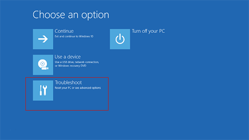 步骤 3. 在"选择一个选项"窗口中,选择"疑难解答",然后单击"重置此电脑"。