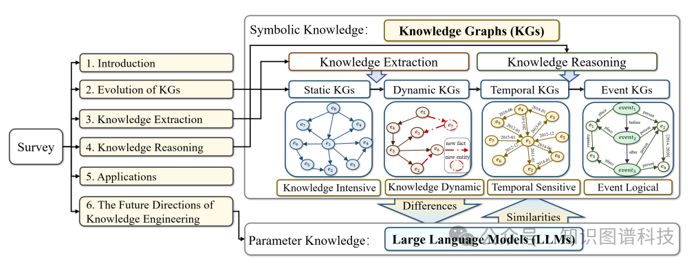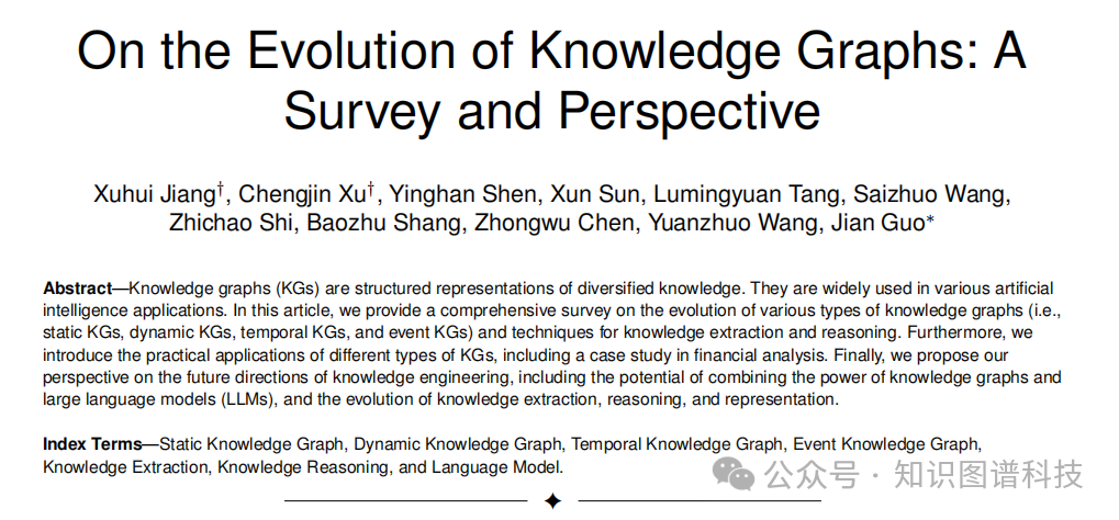 本文系统综述了知识图谱的演进历程,涵盖静态、动态、时序和事件知识图谱四大类型,深入探讨知识抽取与推理技术的发展脉络,并结合金融分析等实际应用案例,展望知识工程与大语言模型融合的未来方向。