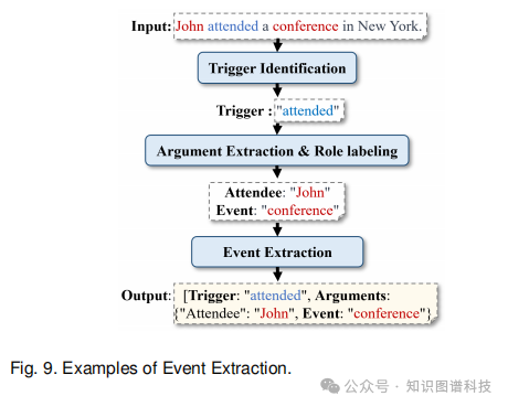 事件知识图谱以事件为中心组织知识,将事件作为一等公民进行表示。事件通常包含以下要素: