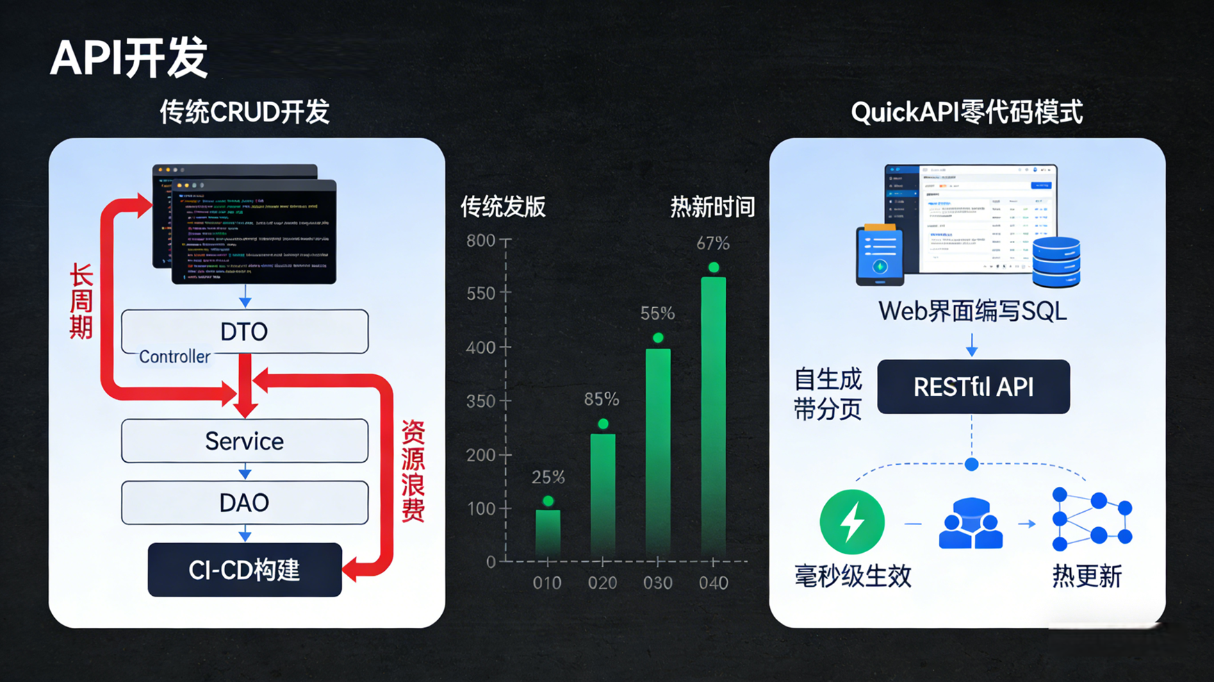 QuickAPI 将这些散落的逻辑升维为统一的接口服务化: