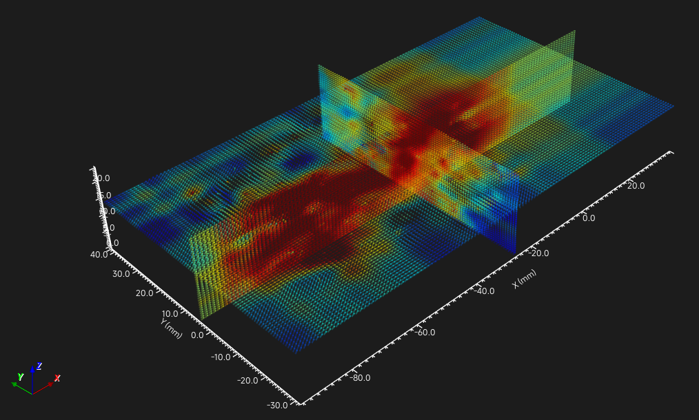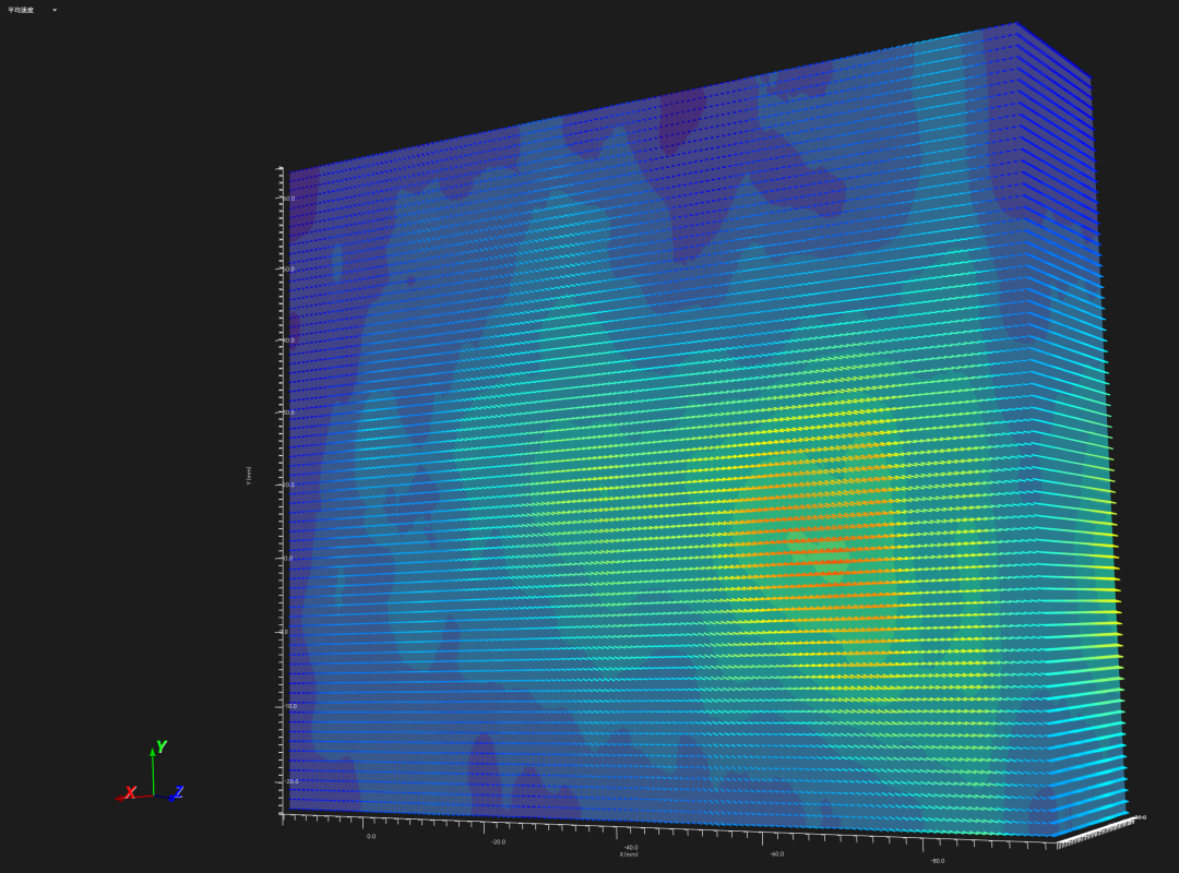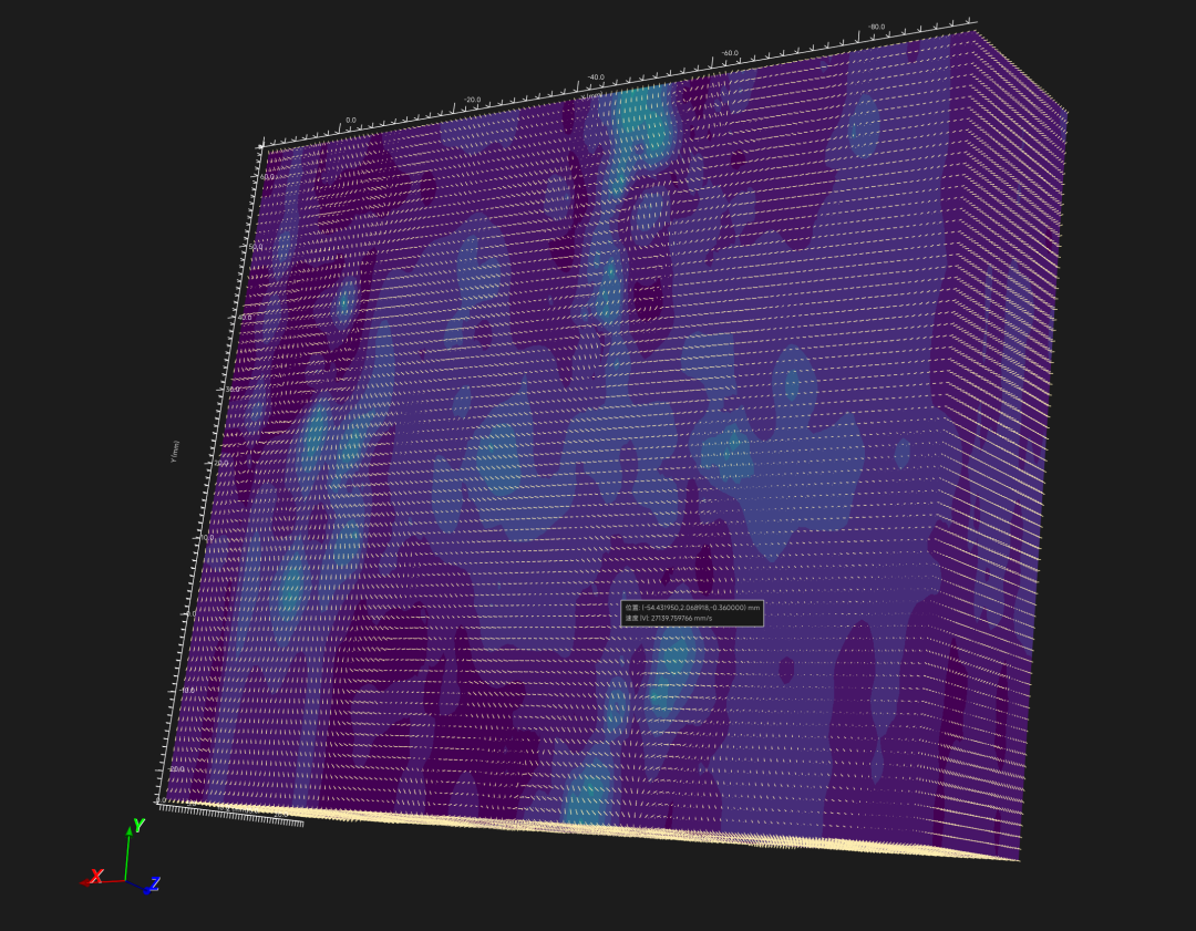 **3)三维流场切片:**支持从不同截面观测火焰燃烧后流场内部的三维速度梯度与结构连续性,解析流场内部的横截面流动细节。