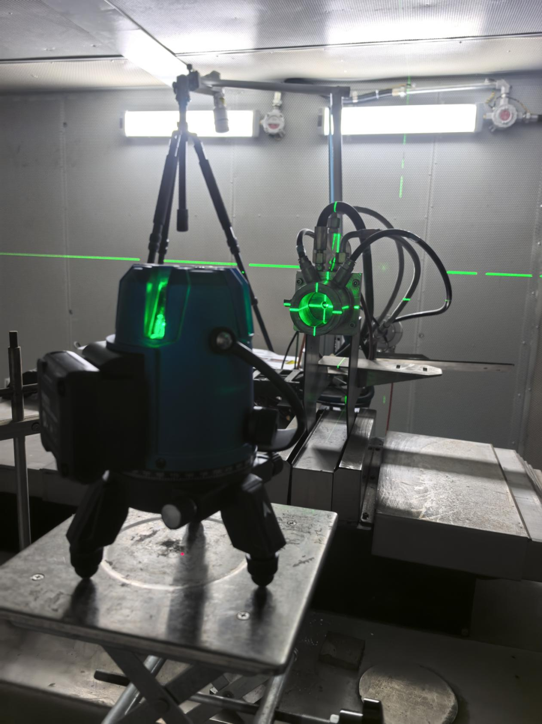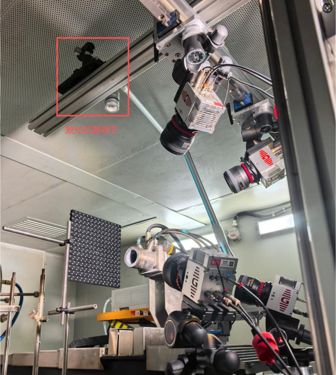 第四步 打开激光器,使用最低能量进行照明,调整激光器出光位置,使体激光照明对准超音速燃烧器喷火口测量区域。