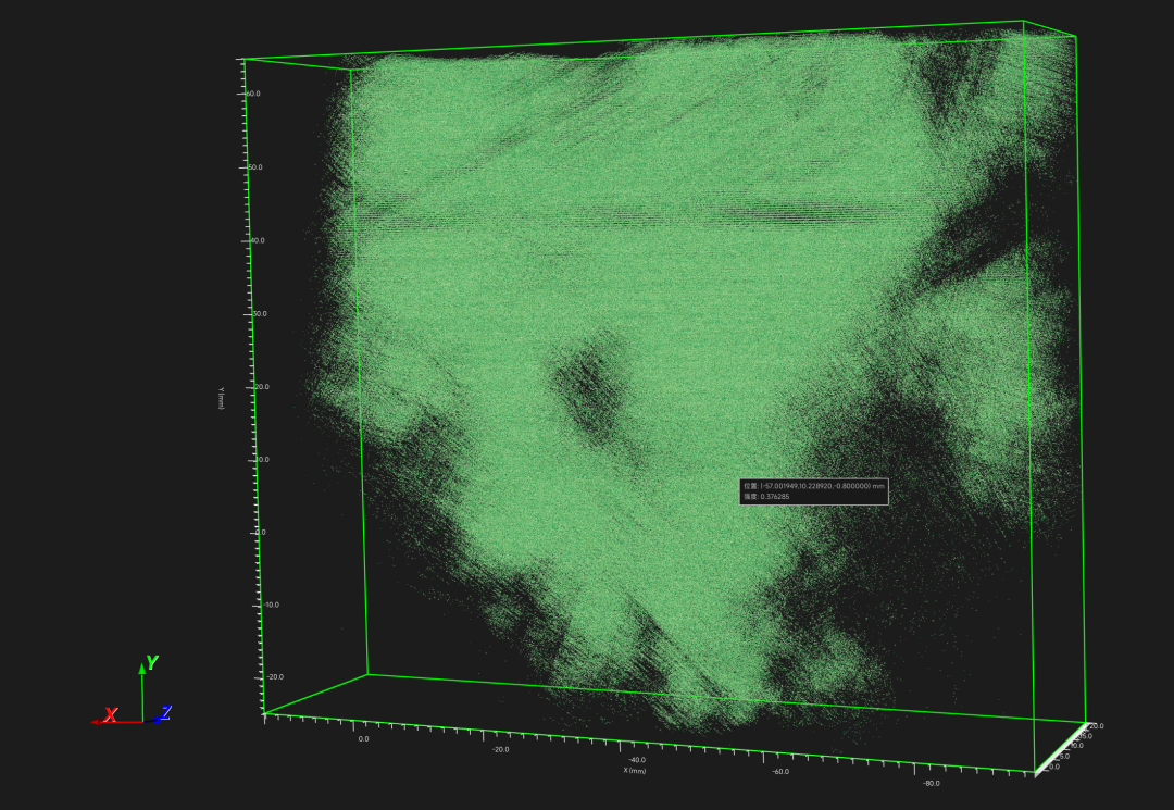 千眼狼RFlow4 PIV流场测量软件具备"粒子重构可视化"功能,重构区域内的粒子效果图如下: